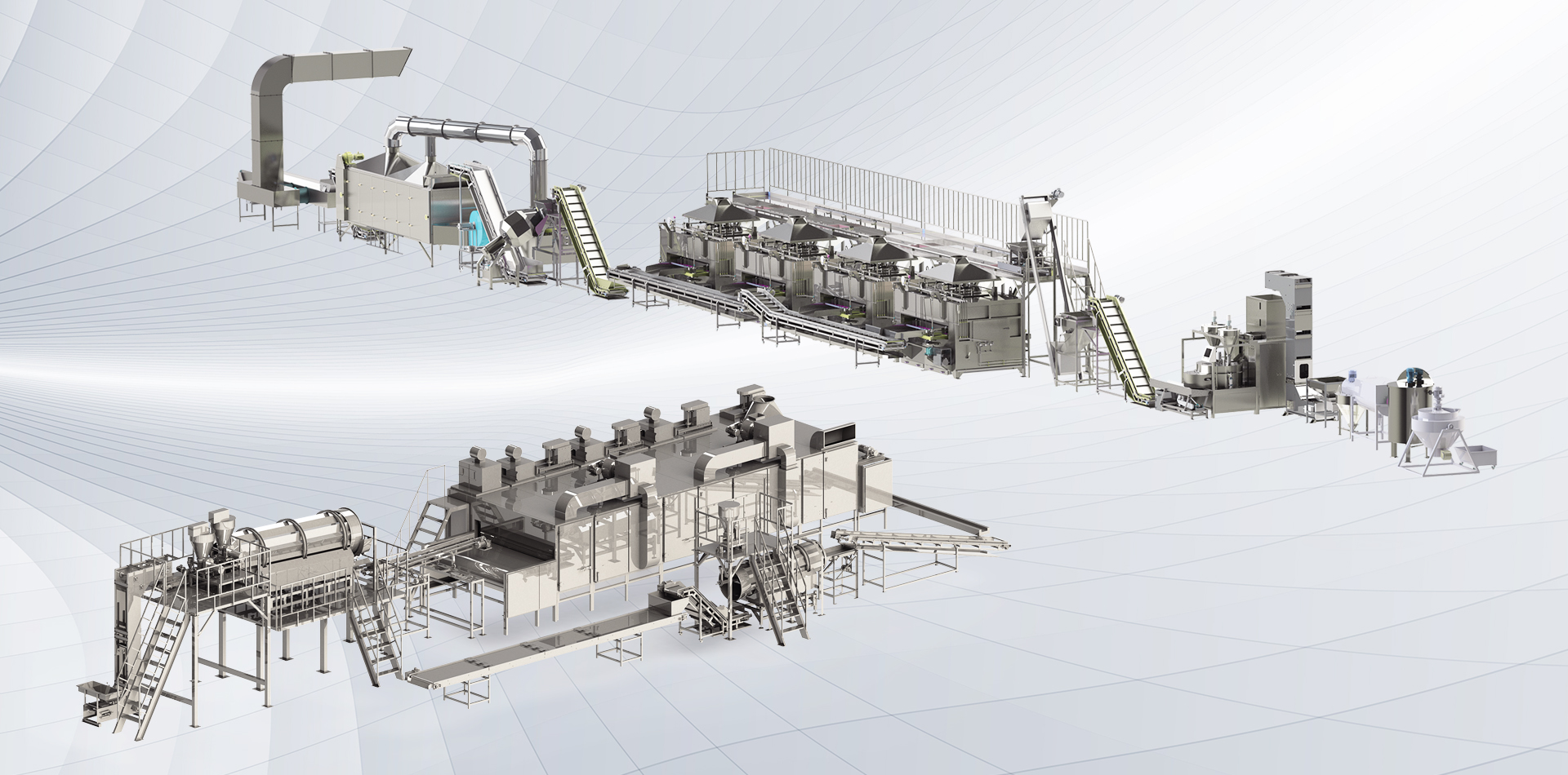 該生產(chǎn)線(xiàn)廣泛用于堅(jiān)果、籽類(lèi)、裹粉顆粒食品、薯片、薯?xiàng)l、膨化食品等加工生產(chǎn)。