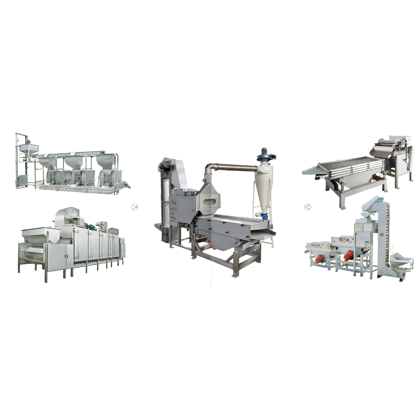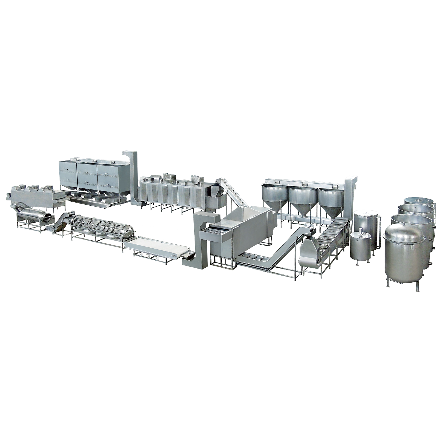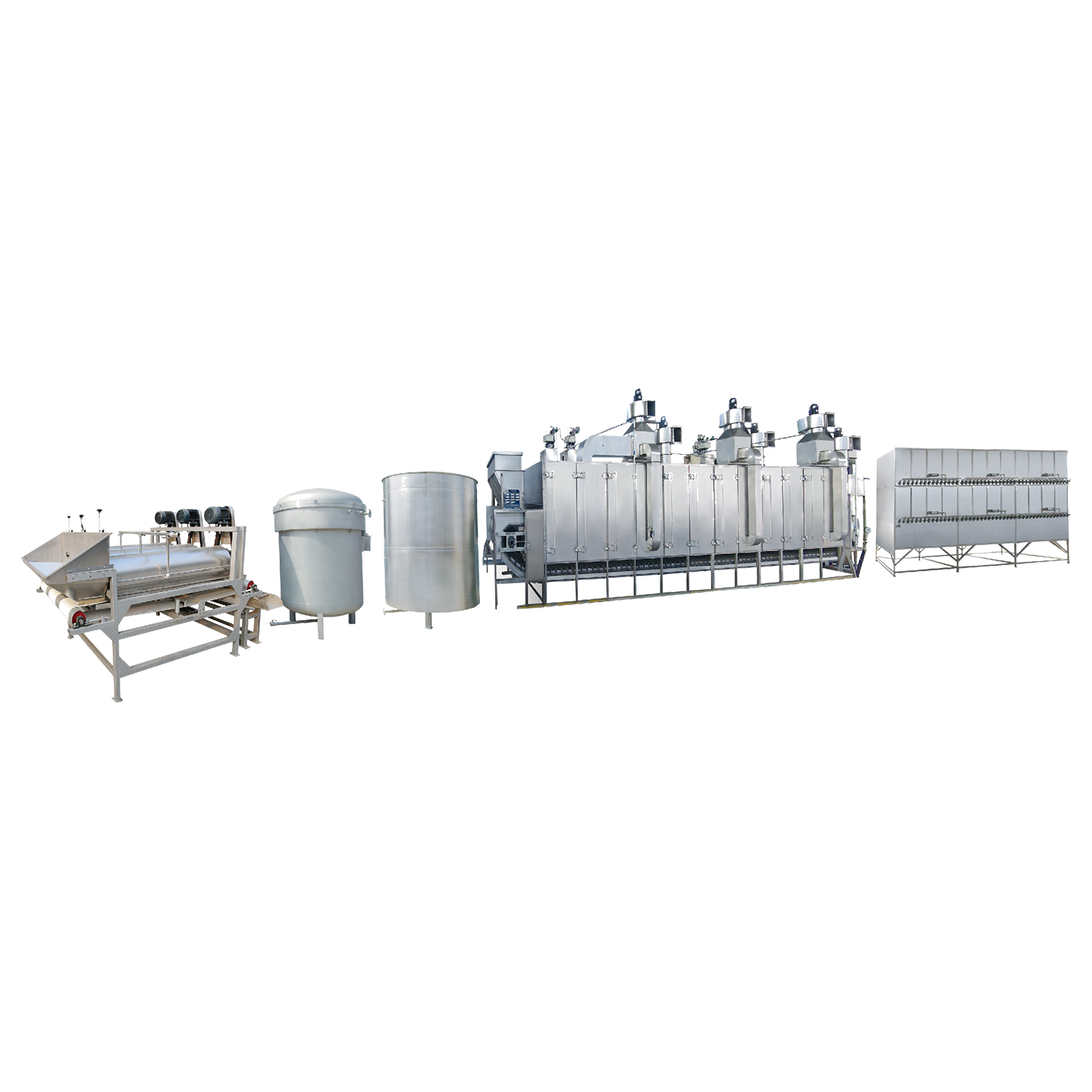 工藝流程 簡易型:原料→裹衣→烘烤→拌料液體→烘干→冷卻→包裝 自動型:原料→一次裹衣-→烘烤→冷卻→二次裹衣→拌料(調味或掛糖)→干燥→冷卻