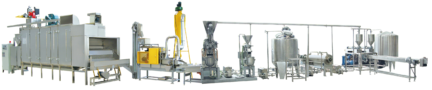 該生產(chǎn)線用于加工黃豆醬、花生醬、堅(jiān)果醬等產(chǎn)品,從原料到灌裝層層把控、精密結(jié)合,具有烘烤質(zhì)地均勻、脫皮效果好、磨醬粒度細(xì)膩、自動(dòng)化程度高等特點(diǎn)。